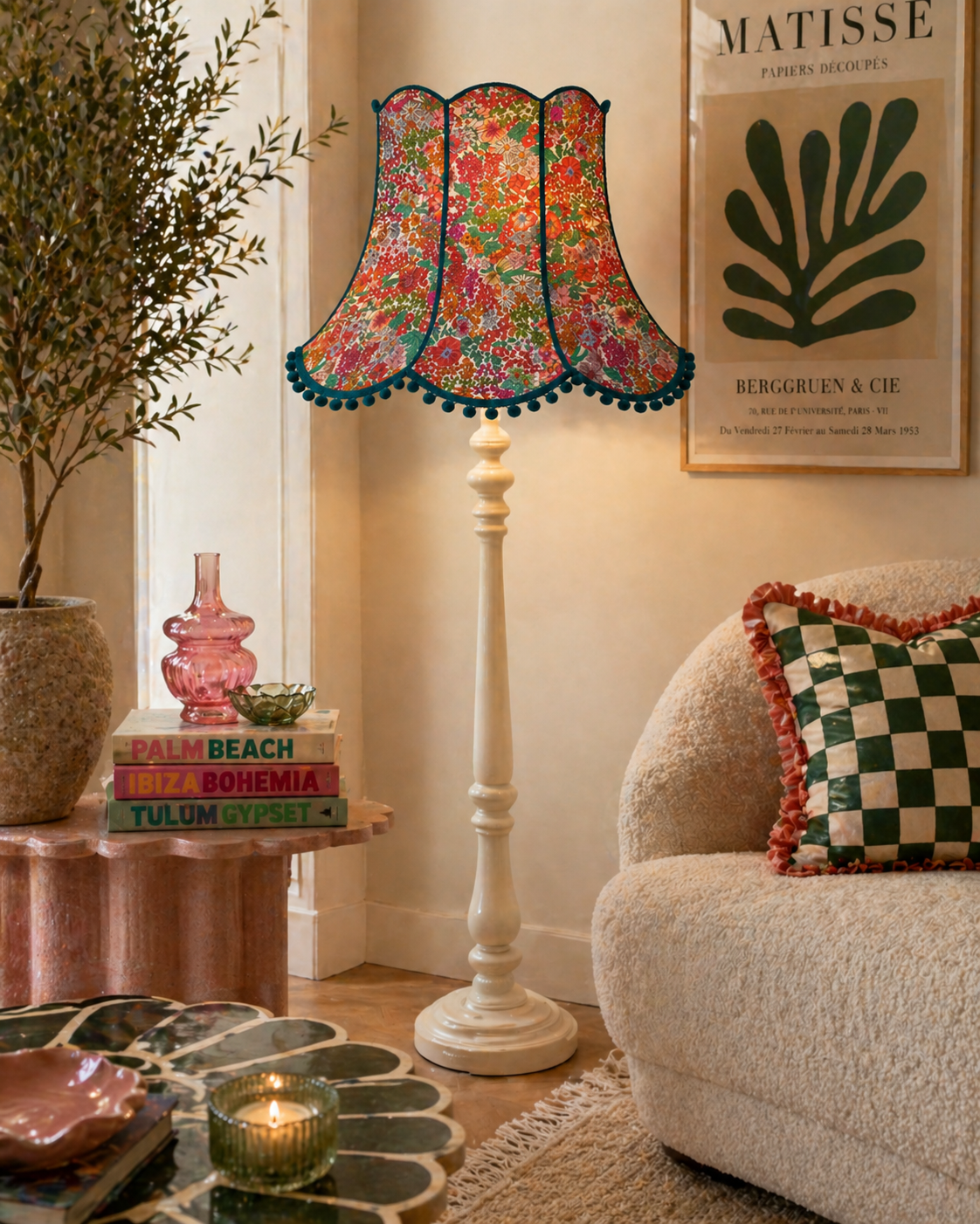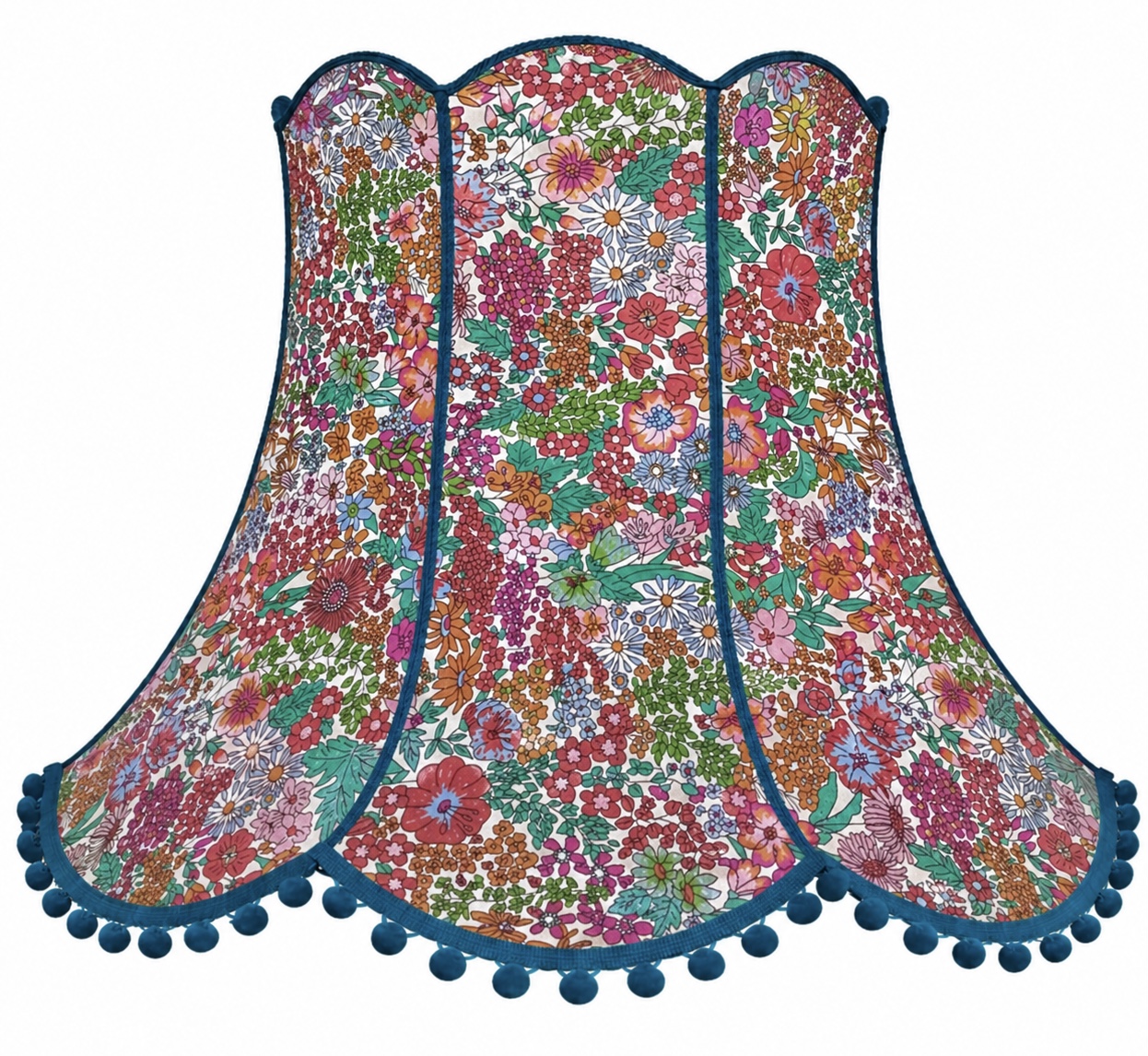 Each lampshade is handmade to order, so the exact placement of the pattern may vary slightly depending on the cut of the fabric but it will always reflect the overall look and balance of the design. If you would prefer a different colour trim or pom poms, just let me know and I will be happy to customise at no extra cost.