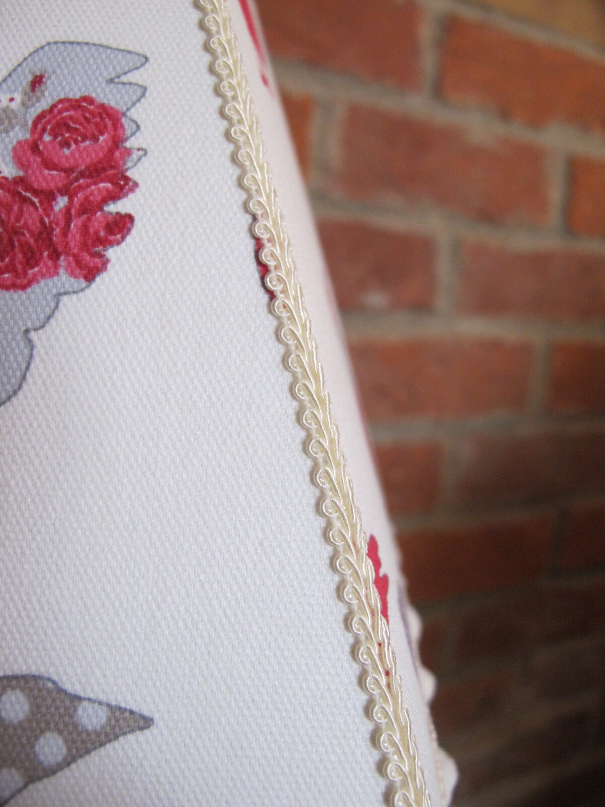Each lampshade is handmade to order, so the exact placement of the pattern may vary slightly depending on the cut of the fabric but it will always reflect the overall look and balance of the design. If you would prefer a different colour trim or pom poms attached, just let me know as I’m always happy to customise at no extra cost.