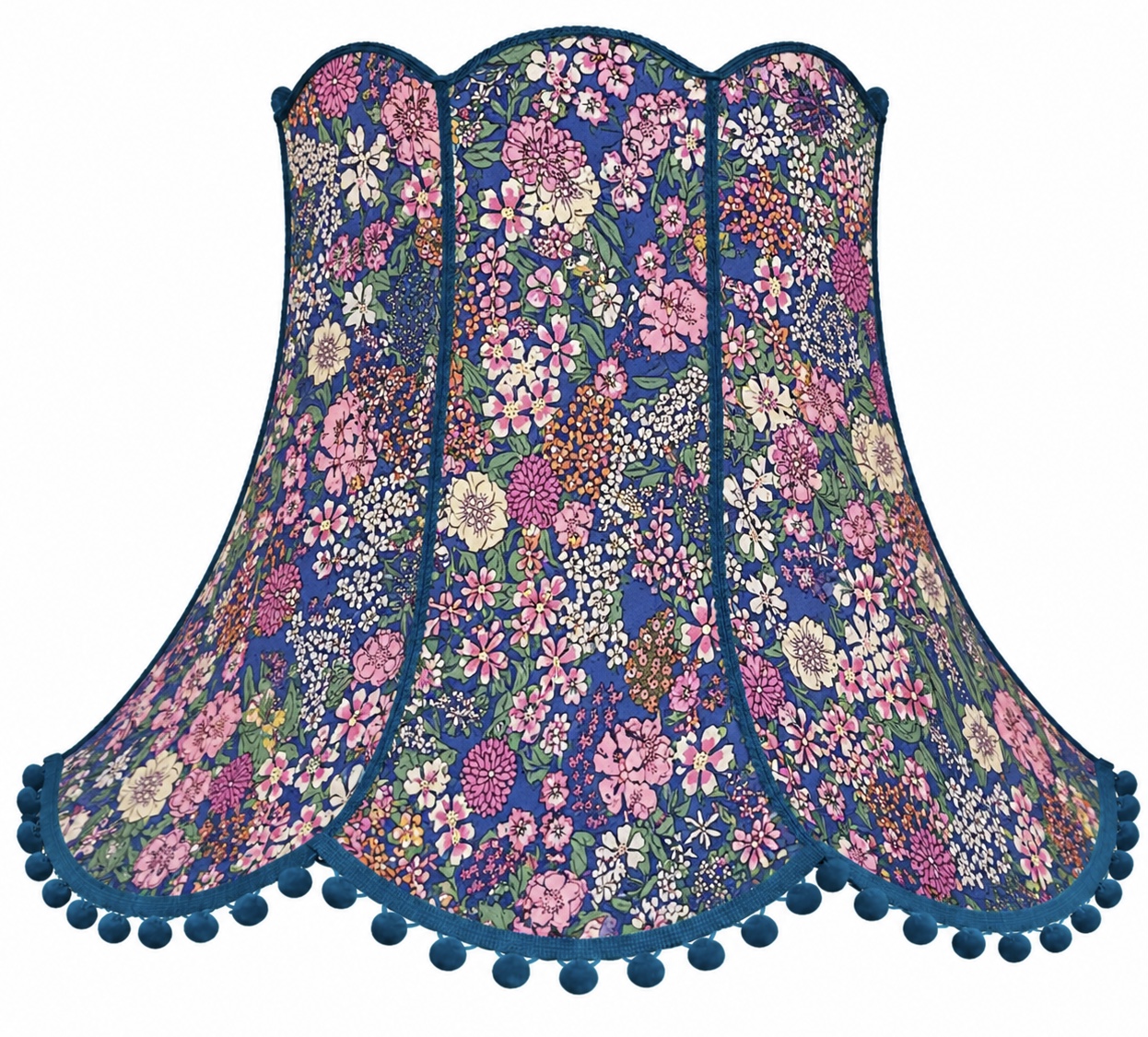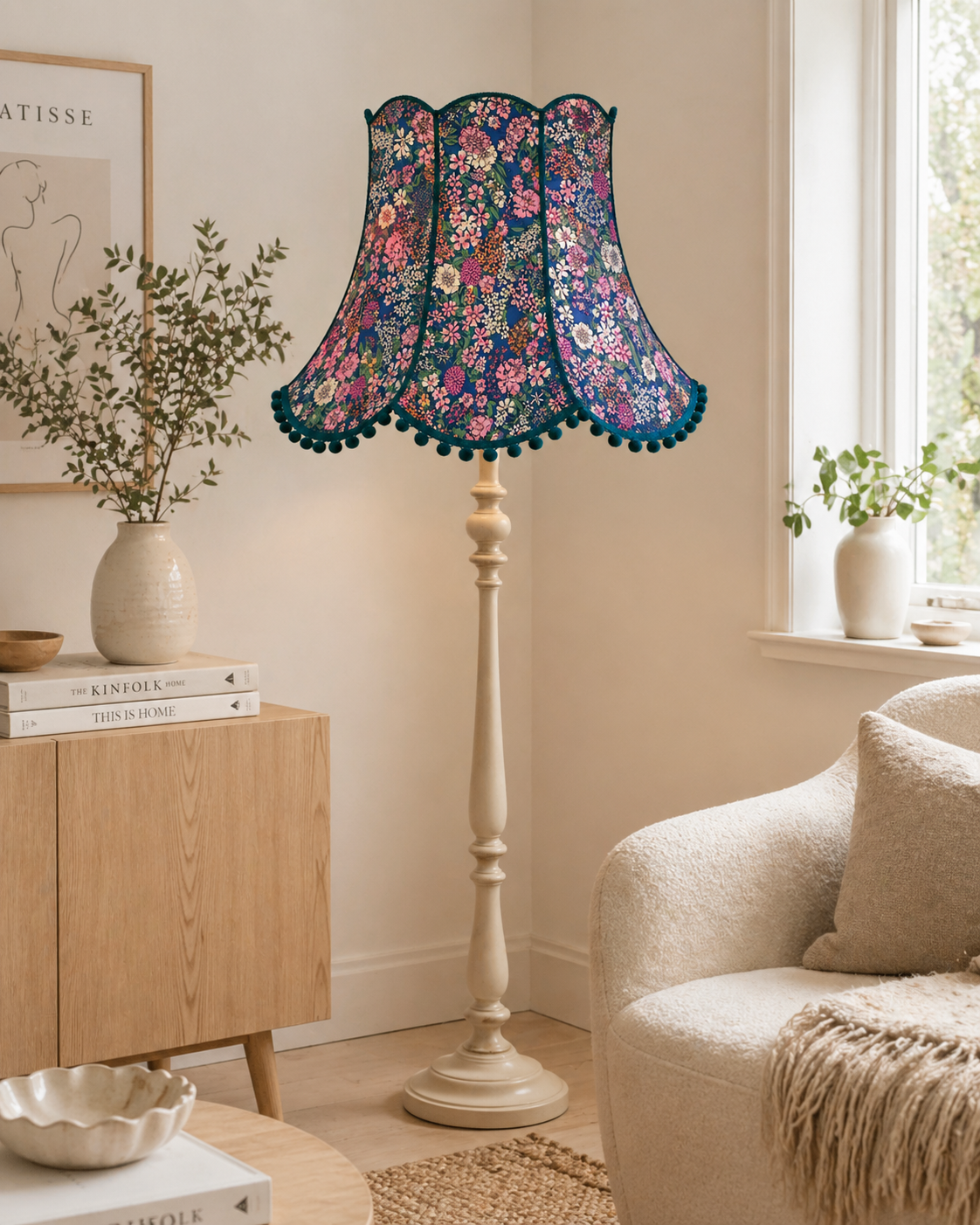 Each lampshade is handmade to order, so the exact placement of the pattern may vary slightly depending on the cut of the fabric but it will always reflect the overall look and balance of the design. If you would prefer a different colour trim or pom poms, just let me know and I will be happy to customise at no extra cost.