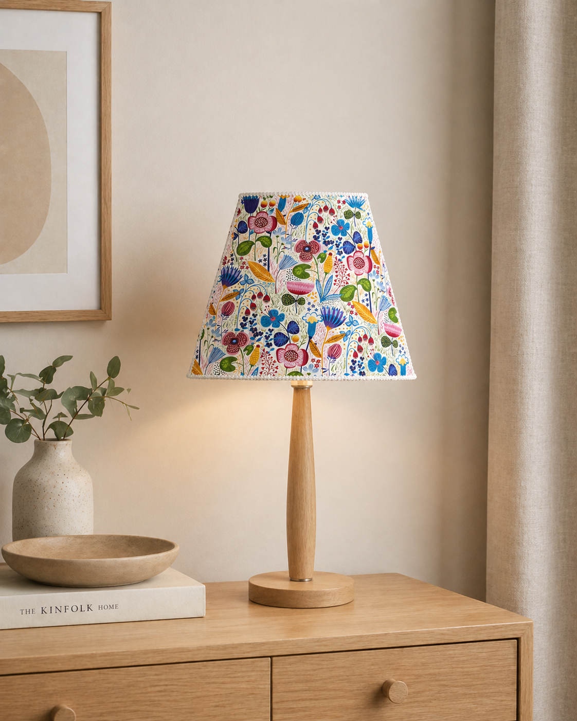 Each lampshade is handmade to order, so the exact placement of the pattern may vary slightly depending on the cut of the fabric but it will always reflect the overall look and balance of the design. If you would prefer a different colour trim or pom poms attached, just let me know as Iβm always happy to customise at no extra cost.