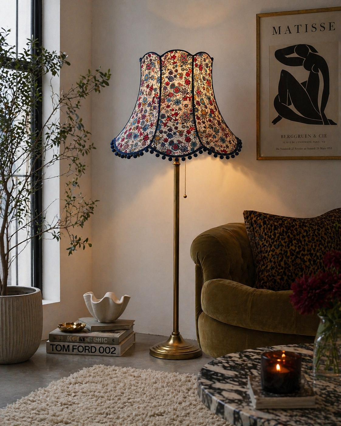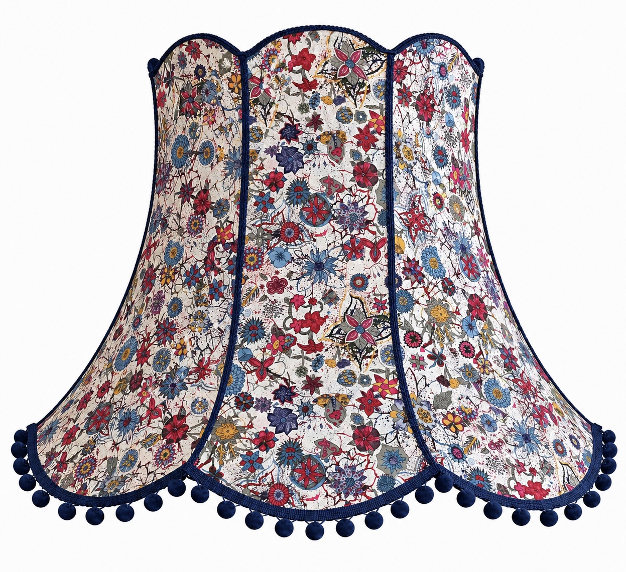 Each lampshade is handmade to order, so the exact placement of the pattern may vary slightly depending on the cut of the fabric but it will always reflect the overall look and balance of the design. If you would prefer a different colour trim or pom poms, just let me know and I will be happy to customise at no extra cost.